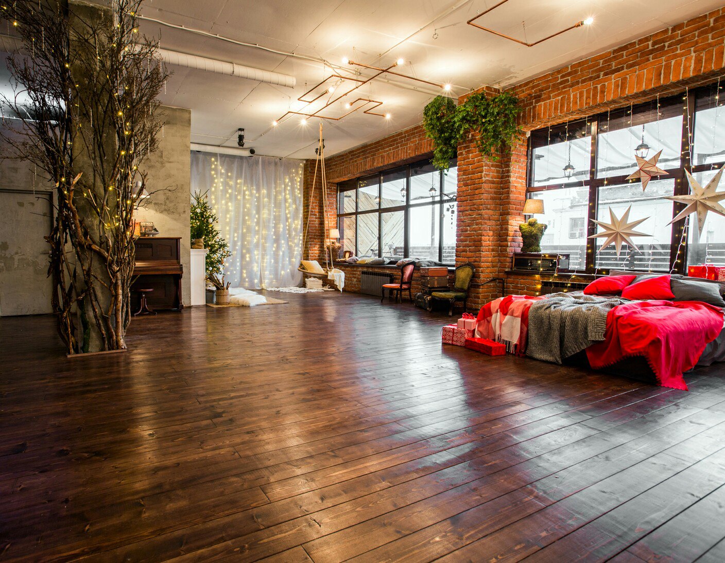 Оформление стен плиткой под натуральный камень или кирпич актуально для многих стилей. В первую очередь это лофт — стилизация под промышленное помещение, которое переделали в жилое. Для этого стиля характерно много свободного пространства, минимум перегородок, конструкции из металла, железобетона, необработанного дерева. В такой интерьер отлично вписывается современная бытовая техника в цвете металлик или темных оттенков.