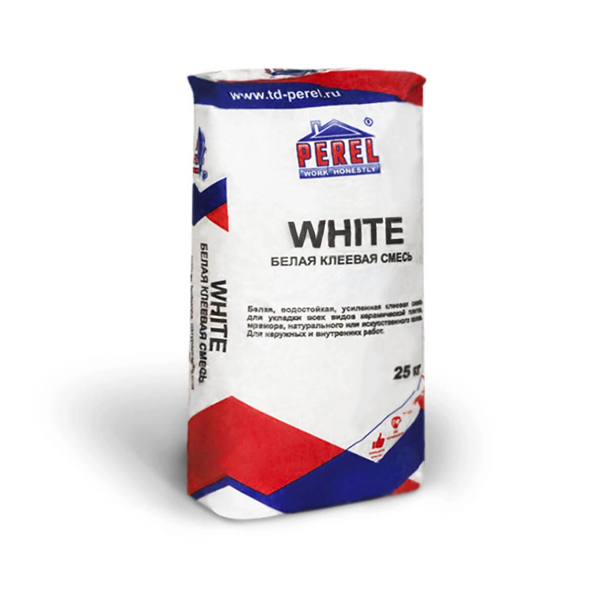 Клеевая смесь White на основе супер-белого цемента, отмытых кварцевых песков и европейских полимерных добавок для укладки всех видов керамической плитки, мрамора, натурального или искусственного камня по любым недеформируемым поверхностям в сухих и влажных помещениях, жилых, общественных, производственных и иных зданиях. Для наружных и внутренних работ.