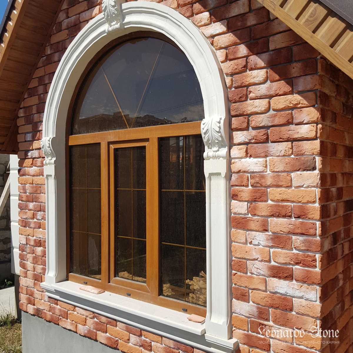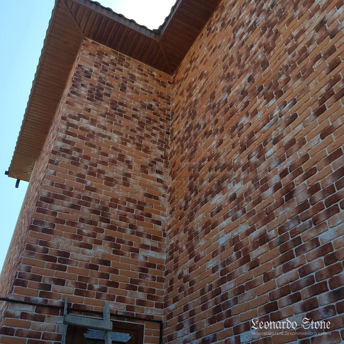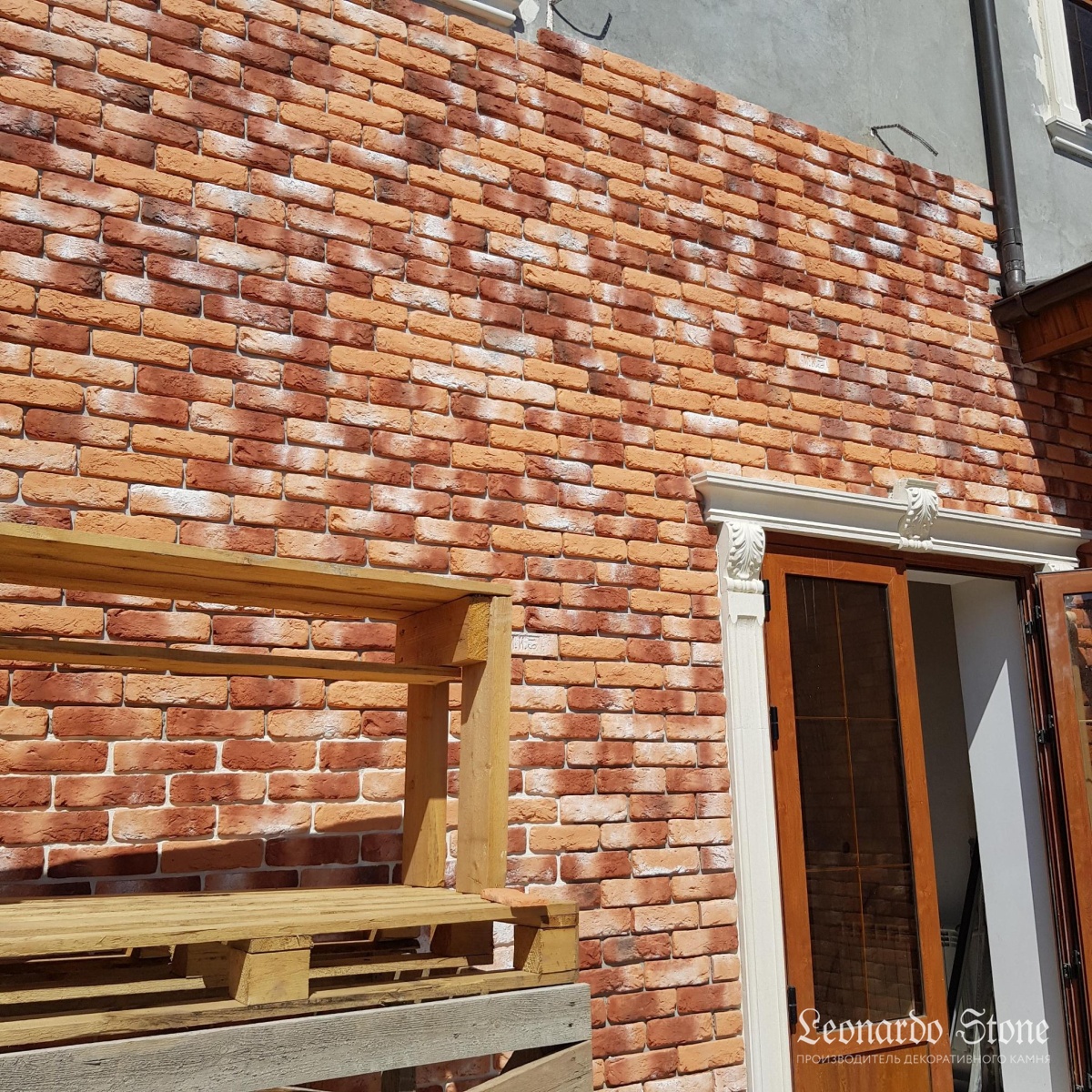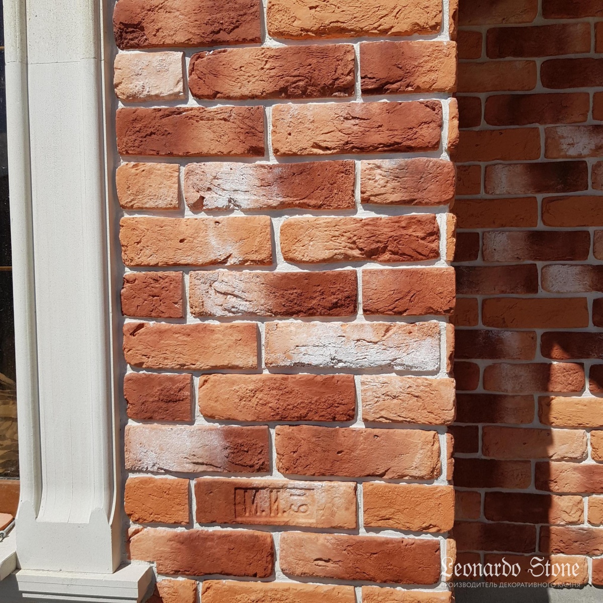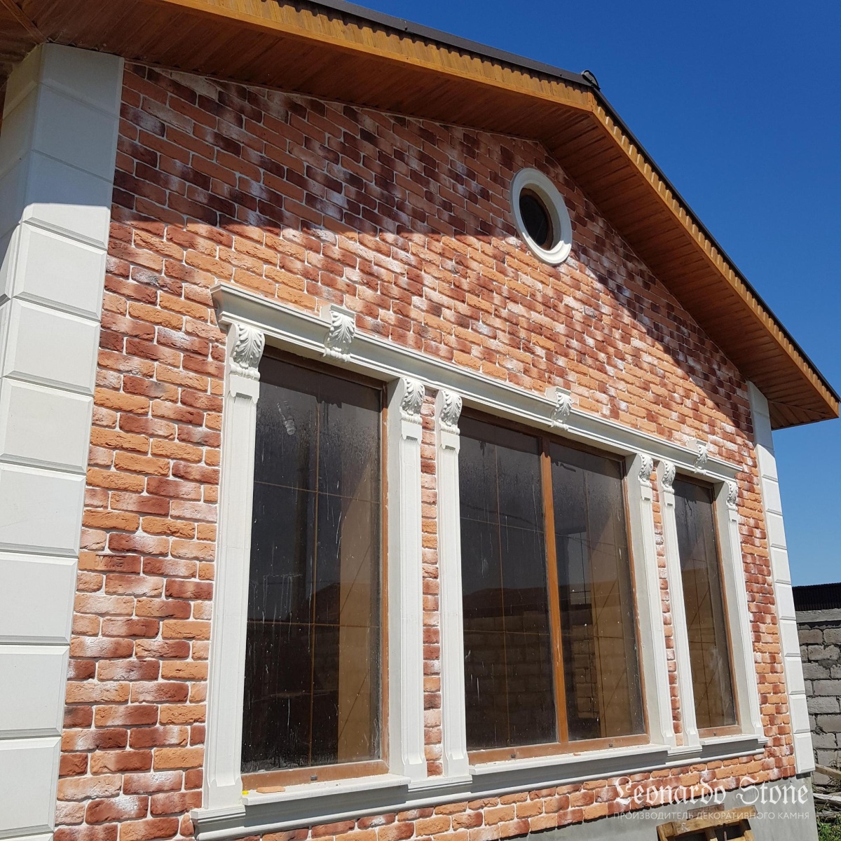 Неровная геометрия, грубая фактура и яркий и выразительный окрас кирпича «Мадрид 490» в сочетании со светлыми декоративными фасадными элементами делают внешний облик этого загородного дома очень привлекательным и оригинальным!