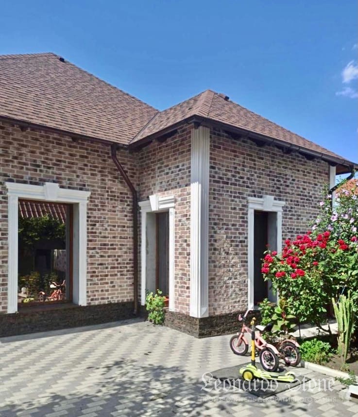 Неровные грани этого кирпича и плавно переходящие друг в друга цвета, имитация следов штукатурки, шероховатостей, а также хаотично расположенных трещин и углублений, образующих оригинальный фактурный узор, очень точно имитируют состаренный кирпич.